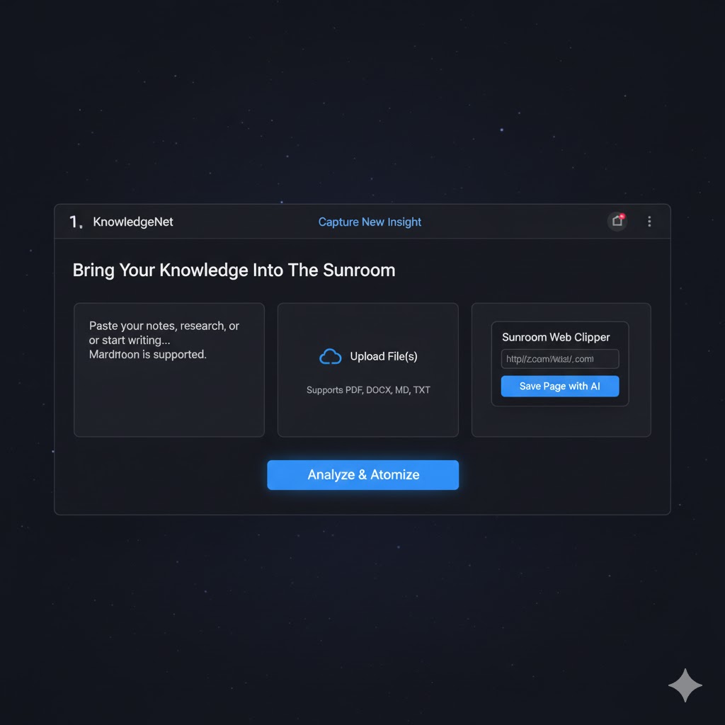 "I built The Sun Room because I was tired of tools that just stored my notes. I wanted a system that would *think* with me. This isn't just a database; it's a mirror for your mind, designed to amplify human creativity rather than replace it."
